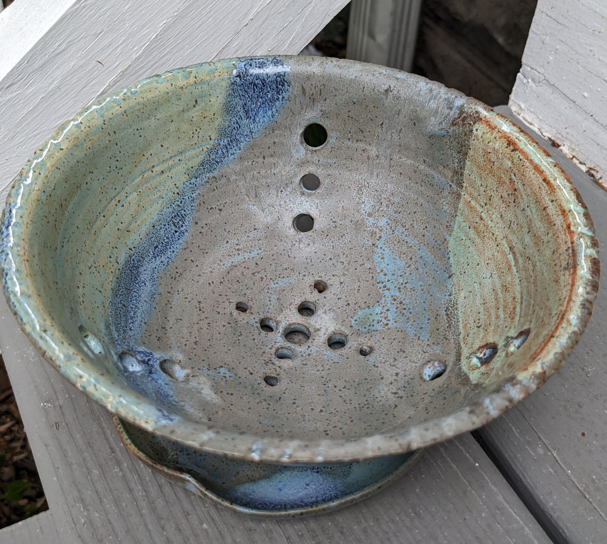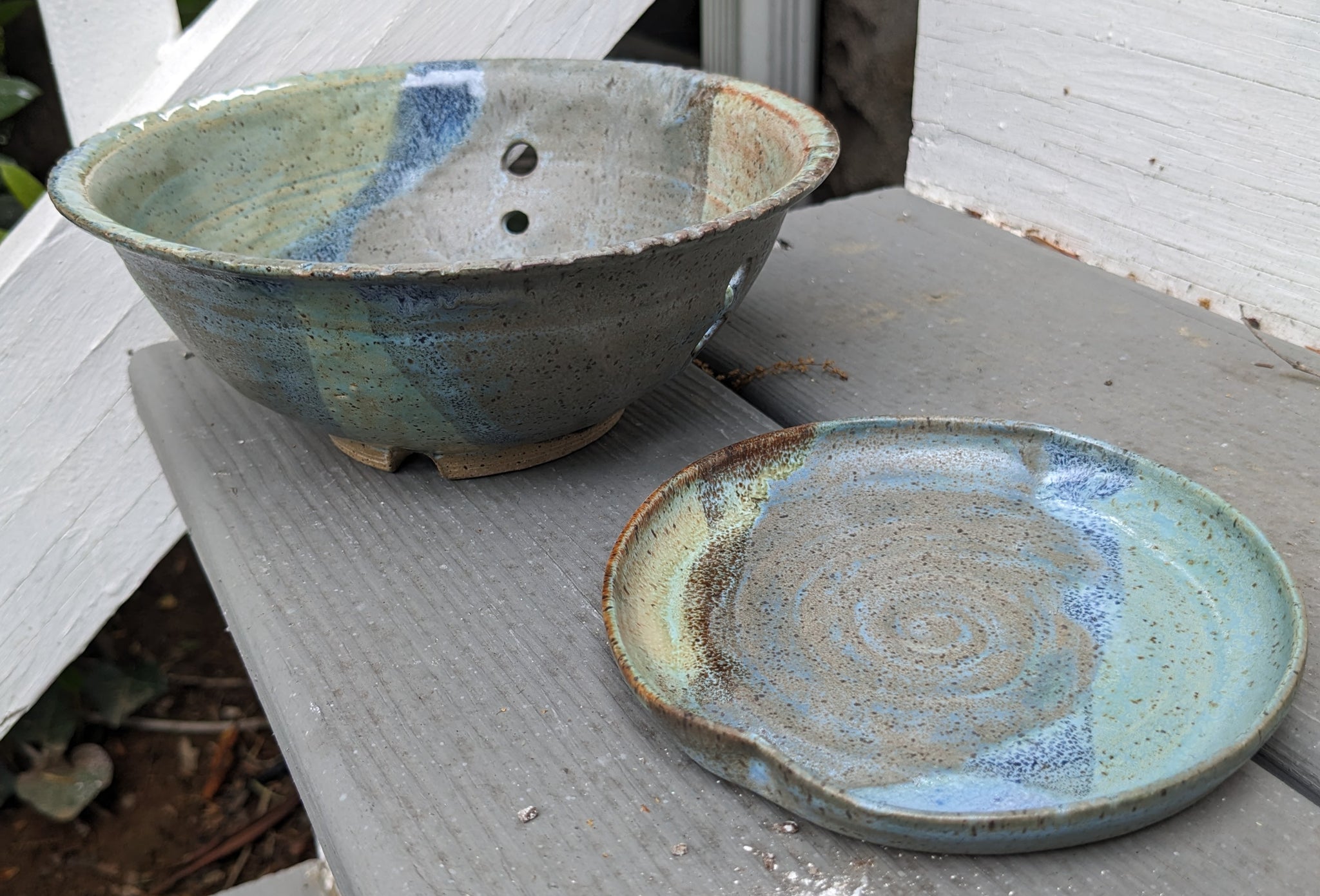 Two piece set: bowl with aeration holes and small plate to place underneath